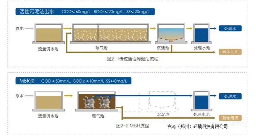 MBR 用于微生物发酵工业,在污水处理领域中的应用研究始于20世纪60年代的美国。早期的膜技术主要采用的是超滤管式膜,后为了节约能耗,发展出了中空纤维膜,目前MBR主要有管式膜和平板膜,管式膜常用于中水回用,平板膜作为污水处理使用。MBR一般由膜组件和生物反应器组成,与传统的生物反应器相比,它具有占用空间少、运行稳定、维修管理方便等特点。